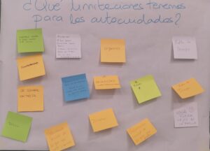 Desde esta perspectiva, el cuidado no se entiende únicamente como una práctica individual (alimentarse bien, meditar, hacer ejercicio, etc.), sino como algo que está fuertemente condicionado por las estructuras de poder del género, la clase, el lugar de origen, la racialización, las capacidades, etc. En el contexto universitario en el que se celebraron las jornadas, por ejemplo, se evidenció en las distintas intervenciones de les estudiantes cómo no es lo mismo poder dedicarse plenamente a los estudios y contar con los fines de semana libres para descansar y disfrutar, que tener que compatibilizarlos con un trabajo precario o con el cuidado de un familiar dependiente. El autocuidado no sólo es necesario para estar bien, si no que su consecución implica necesariamente una reorganización radical de los recursos, los tiempos, los espacios y del reconocimiento social y por tanto, se convierte también en un elemento de resistencia y de reivindicación política que necesita para su realización de la autoorganización colectiva.